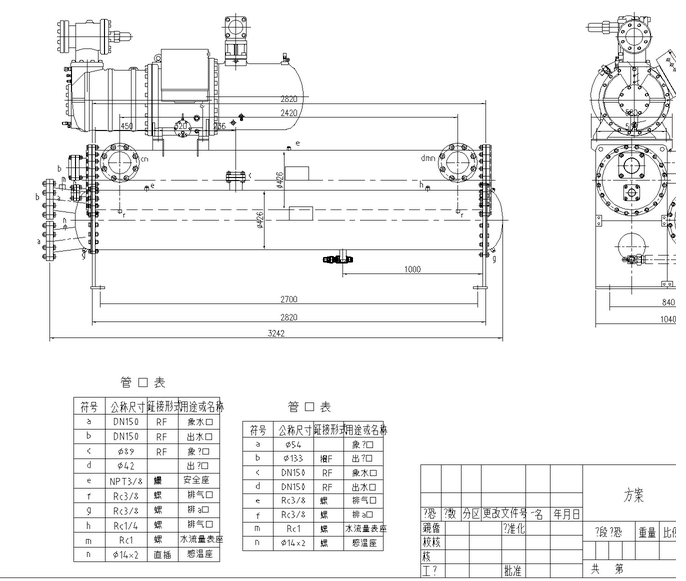 本機組為螺桿式冷水機組,制冷量為127KW,電機功率為:27KW。